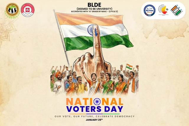 BLDE DU2026-01-23T14:35:33+05:30National Voters Day - BLDEDU National Voters Day - BLDEDU National Voters Day - BLDEDU BLDE (Deemed to be University) observed the 16th National Voters’ Day, 25th January 2026, with great enthusiasm, reaffirming its commitment to nurturing informed, responsible, and active citizens, in line with the national theme “My India, My Vote.” The programme was organised under the banner of the Electoral Literacy Club (ELC), where faculty members, staff, and students actively participated in activities aimed at strengthening democratic values and electoral awareness. A key highlight of the event was the Voters’ Pledge, in which participants collectively pledged to uphold [...]